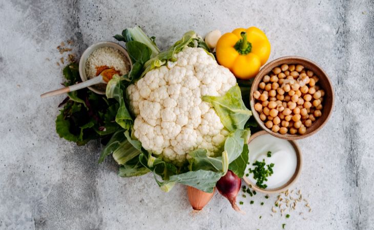 Besonders lecker ist der Blumenkohl in diesem Burger. Er gehört zur Familie der Kreuzblütler, ist sehr ballaststoffreich und enthält viel Vitamin B. Durch seinen hohen Ballaststoffgehalt eignet er sich besonders zum Abnehmen und zur Verdauungsförderung. Natürlich kann man diesen Burger auch mit dem klassischen Burgerbrötchen genießen!